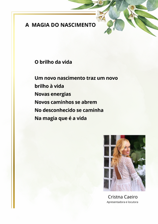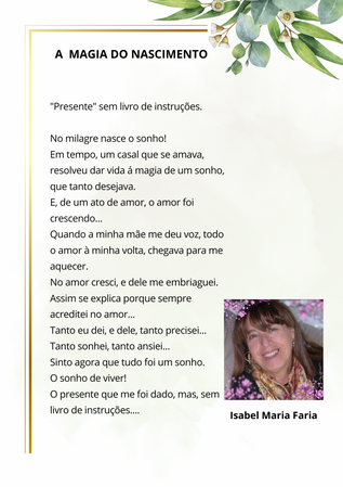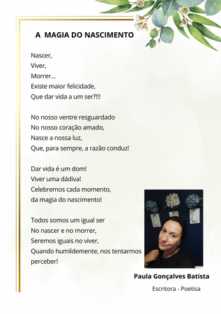 - Cada participante poderá enviar uma poesia, prosa ou verso da sua autoria, inspirada no tema “A Magia do Nascimento”.